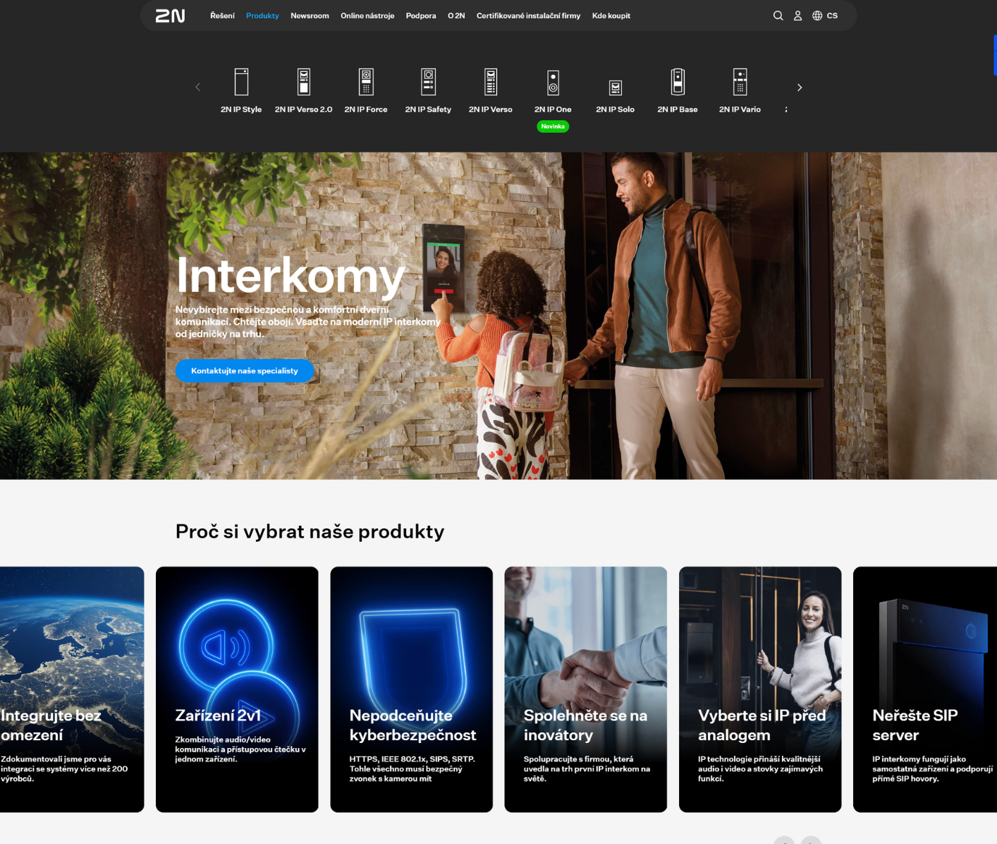 Next problem was non-existing product catalogue, where would be data about products saved structurally including attributes, pictures and files. Web presentation does not serve only as presentation of company 2N and it's products to customers, but also as a portal for distributors and partners of 2N, which bring lots of complementary information and materials. Project is devided on several sub-stages, so we still stand in front of quite a lot of work.