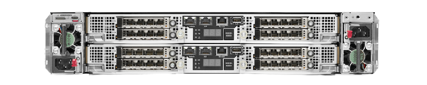 Představte si rackový box o výšce 2U, který má zepředu 24 pozic pro disky a zezadu je osazen dvěma servery. Co server, to jeden řadič základního modelu. Co řadič, to jeden procesor AMD, množství slotů pro RAM, TPM čip a pozice pro porty. Žádný specializovaný hardware, který prodražoval speciální řadiče pro úložiště. Vše správně funguje díky obrovskému výkonu současných procesorů AMD EPYC™. A je dobré si zopakovat – to, jaké funkce bude mít konkrétní úložiště, řešíme softwarovou vrstvou. Právě ta definuje způsob využívání. Aktuálně máme k dispozici dva výkonově odlišné boxy. V tom prvním jsou osmijádrové procesory a v tom druhém nalezneme šestnáctijádrové procesory a 256 GB cache (v každém řadiči).