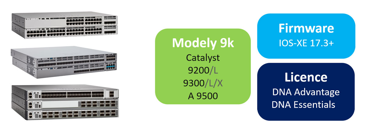 Často je v podporných veciach háčik, ale tentoraz to tak nie je. V podpore sa nestanovujú žiadne iné podmienky, iba technické. V prvom rade to musia byť prepínače Catalyst 9200, 9300 alebo 9500 (vrátane variantov L a X). Tieto prepínače musia mať aktuálny firmvér, min. IOS-XE 17.3 a vyšší. A samozrejme musia mať platnú licenciu DNA.Tu platí, že základný variant DNA-Essentials umožňuje pridanie zariadenia a jeho dohľad na úroveň portu, zatiaľ čo variant DNA-Advantage rozširuje dohľad až na úroveň komunikácie cez port a ponúka úplný pohľad na komunikačné udalosti, čo môže byť veľmi lákavým prínosom. Variant DNA-A sa najčastejšie volí pre základný a agregačný prepínač a DNA-E pre sieťovú prístupovú vrstvu, kde viditeľnosť prevádzky nemusí byť taká dôležitá.